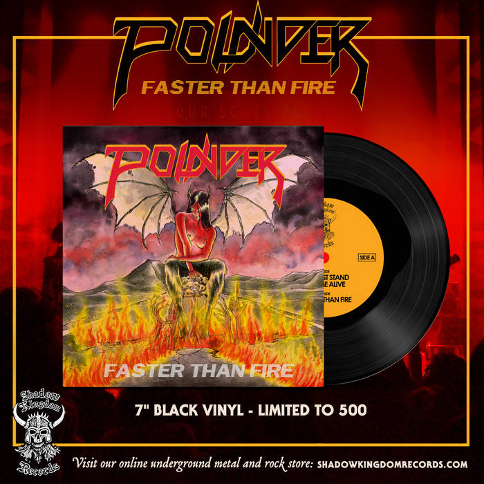 SHADOW KINGDOM RECORDS is proud to present POUNDER's highly anticipated debut EP, Faster Than Fire, on 7" vinyl format.